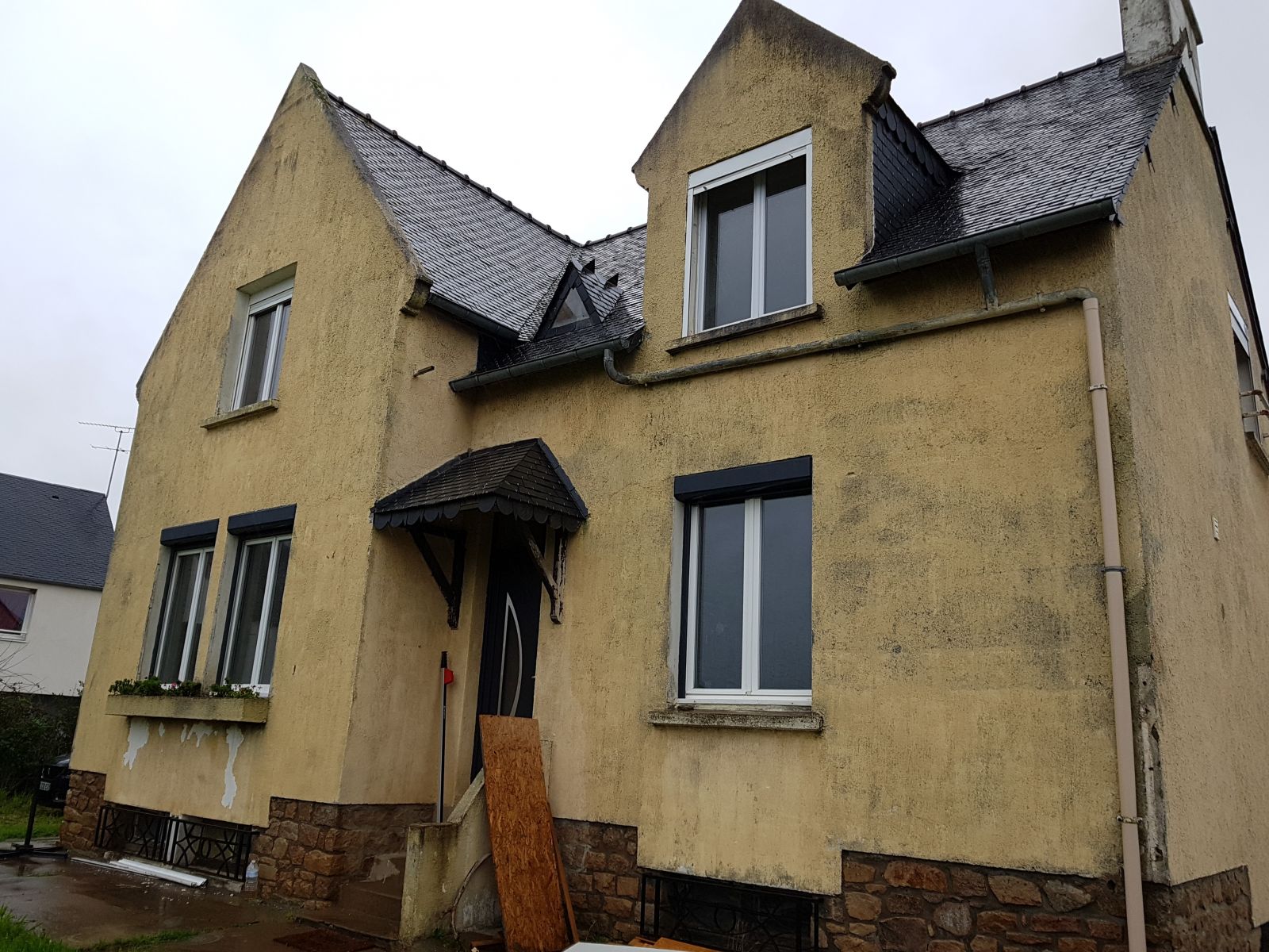 Erwan Le Pinvidic : C’est une maison construite en 1953, avec un étage et une superficie totale d’environ 150 m2. Elle est en forme de L avec une extension à l’arrière pour une petite salle de bain. Quand nous l’avons achetée, c’était une maison qui avait un peu vieilli, avec un soubassement en pierre et le reste en parpaing. Le crépi tombait un peu partout, cela faisait au moins 20 ans qu’il n’y avait pas eu de ravalement. Il y avait donc urgence à intervenir. Nous avons fait faire un devis chez un entrepreneur mais le montant dépassait notre budget. C’est en discutant avec mon patron que je me suis intéressé à l’isolation par l’extérieur. Cela nous permettait en même temps de renforcer l’isolation thermique de la maison. En effet, l’isolation intérieure que j’avais réalisée moi-même s’est révélée finalement insuffisante.